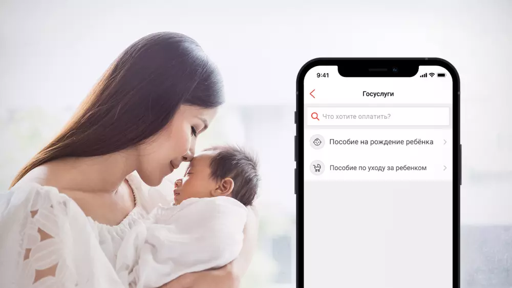 "Рождение ребёнка — прекрасное событие! Специально для родителей наша команда совместно с госорганами сделала онлайн-сервис по получению пособий на рождение ребенка прямо в нашем суперприложении Kaspi.kz. Теперь наши любимые клиенты могут оформить пособие не выходя из дома, а сэкономленное время провести в заботах о младенце!"