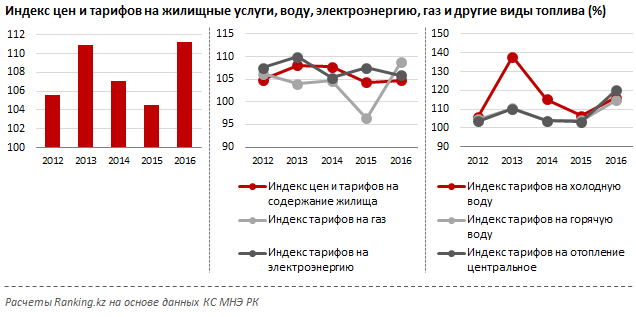 Тарифы на жилищные услуги, тепло и водоснабжение, электроэнергию, газ и прочие виды топлива с начала года увеличились на 5 процентов, с августа 2016 года - на 6 процентов. Об этом сообщается в исследовании Ranking.kz.
