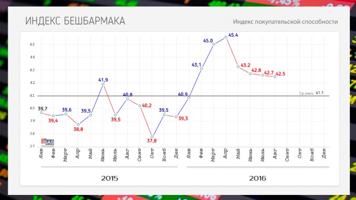 "Прошлогодняя девальвация и последующий рост цен вызвали сильное падение индекса в октябре 2015 года, однако последующее снижение цен отечественными производителями, вызванное снижением покупательской активности населения, привело к последующему стремительному росту индекса в период с ноября 2015 по апрель 2016 года. Снижение цен отечественными производителями в итоге к апрелю 2016 году привело к некоторому дисбалансу интересов производителей и потребителей. Следствием стало некоторое повышение цен, а за ним - плавное снижение индекса и приведение его значений к позиции максимума 2015 года", - сообщили в компании ISAS.