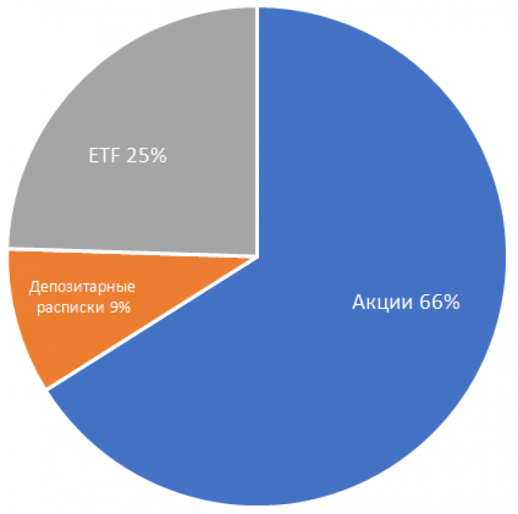 2. Структура портфеля ценных бумаг ПИФ "XYZ", предусматривает агрессивную инвестиционную стратегию и инвестиции в долевые инструменты: