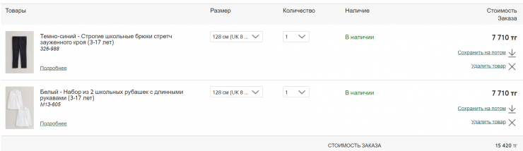 Существует множество зарубежных интернет-магазинов, специализирующихся на продаже школьной формы. К примеру, сайт nextdirect.com. Это британский сайт с прямой доставкой в Казахстан. На заказы от 15 000 тенге доставка до дома будет бесплатной.