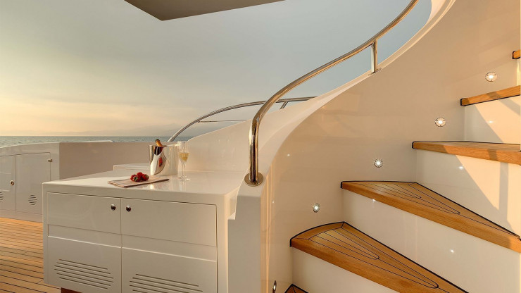 Пара отправилась в плавание с побережья Майорки на частном самолете. Личный вертолет миллиардера приземлился на площадку, построенную на вспомогательном судне.