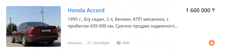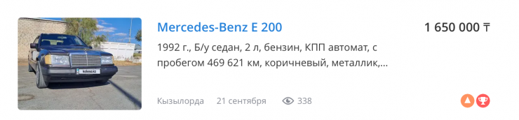 Кажется, что 1,7 миллиона тенге не хватит, чтобы купить автомобиль. Однако предложения о продаже поражают разнообразием. Например, можно купить Mercedes-Benz E 230 1989 года выпуска или легковой автомобиль Honda Accord 1995 года выпуска за 1,6 миллиона тенге, а также Deo Nexia или Lada Priora 2011 года.