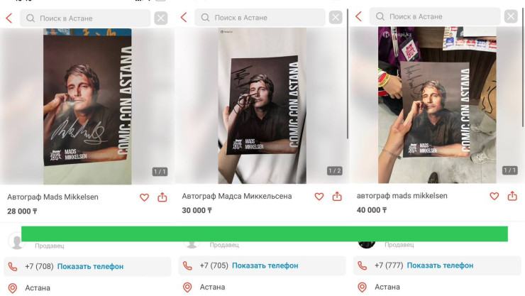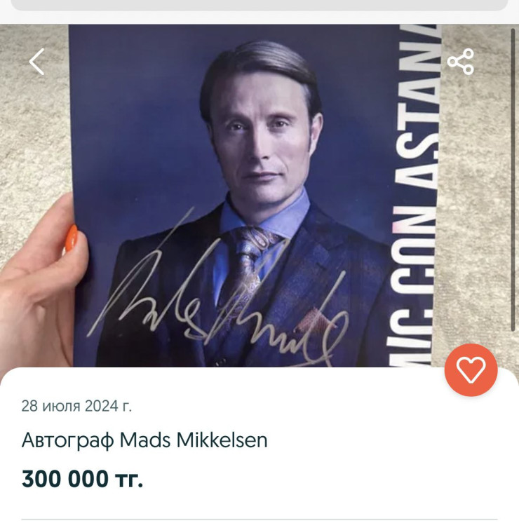Популярные сервисы объявлений заполонили объявления о продаже автографа знаменитого датского актера Мадса Миккельсена. Жители столицы начали массово предлагать эксклюзивную подпись после прошедшего фестиваля Comic Con Astana, передает Tengri Life.