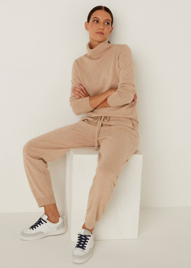 Подобные шерстяные костюмы популярны который сезон, поэтому найти их в масс-маркете – задача простая. Главное правило – выбирать кашемировые изделия, которые будут сохранять тепло и не дадут замерзнуть в горах. Изделие можно приобрести на сайте бренда United Colors of Benetton.