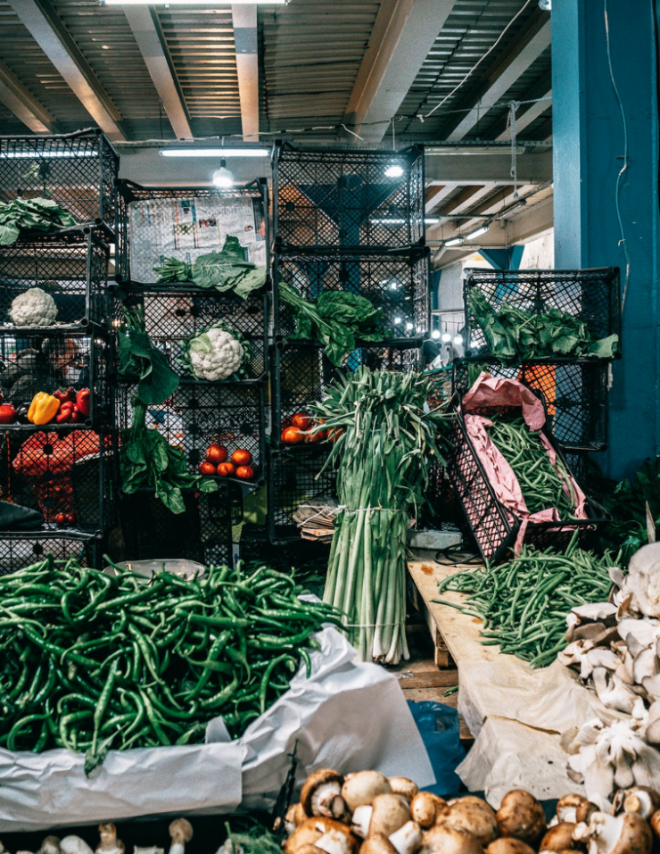 Семейная пара из Алматы Индира и Акжол Мейманкуловы закупают мясо и овощи на рынке. В отличие от супермаркетов, где овощи и фрукты летят через океаны, на базарчиках представлен широкий выбор местных продуктов.