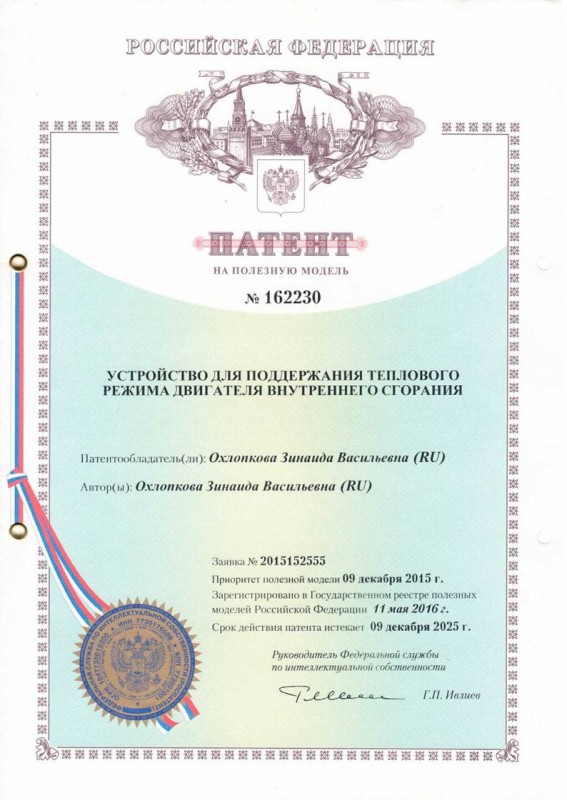 Патент на изобретение. Фото: Василий Охлопков