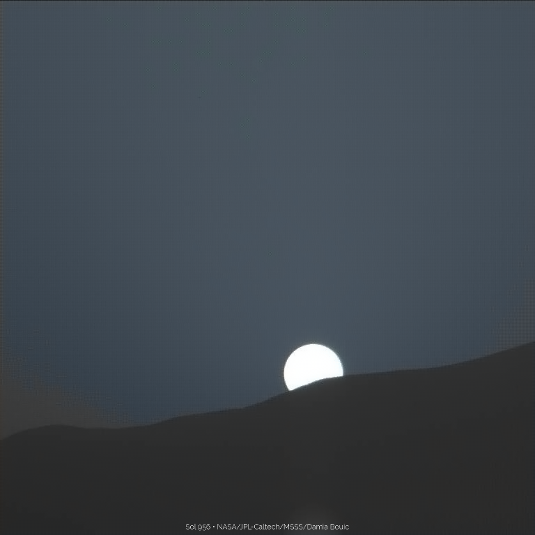 Отмечается, что фотографии были обработаны для удаления некоторых дефектов съемки, однако примерно в таком цвете человеческий глаз должен видеть марсианский закат.