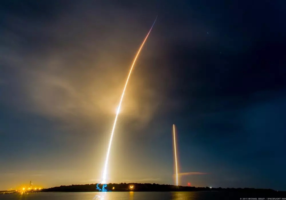 "Первая ступень приземлилась на морскую платформу OCISLY после старта с мыса Канаверал во Флориде", - написал Маск.