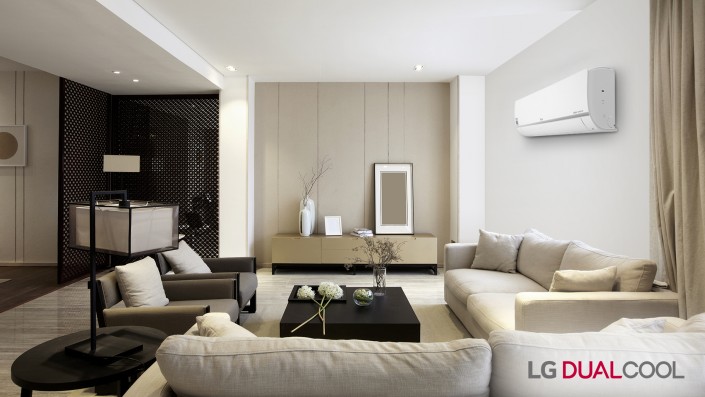 LG DUALCOOL – новое поколение бесшумных кондиционеров, прекрасное решение для вашего стильного пространства – от гостиницы и спальни до небольшого магазина или ресторана. Его мощности достаточно для поддержания нужной температуры в комнате площадью до 50 квадратных метров.