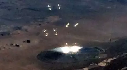 Один из пассажиров рейса авиакомпании American Airlines, следовавшего из Сан-Хосе (Калифорния) в Хьюстон (Техас), запечатлел загадочные огни и некий гигантский диск на земле в районе сверхсекретной "Зоны 51", которая расположена на юге штата Невада, пишет британская газета "Daily Express".