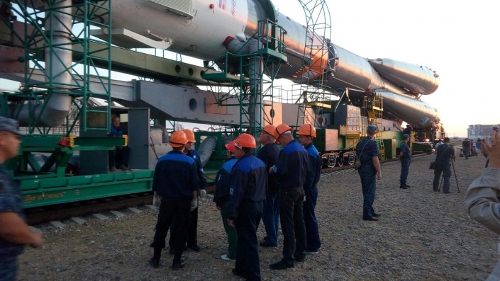 Ракета-носитель для отправки новой экспедиции на МКС доставлена на стартовый комплекс "Байконура" Фото ©Tengrinews TV