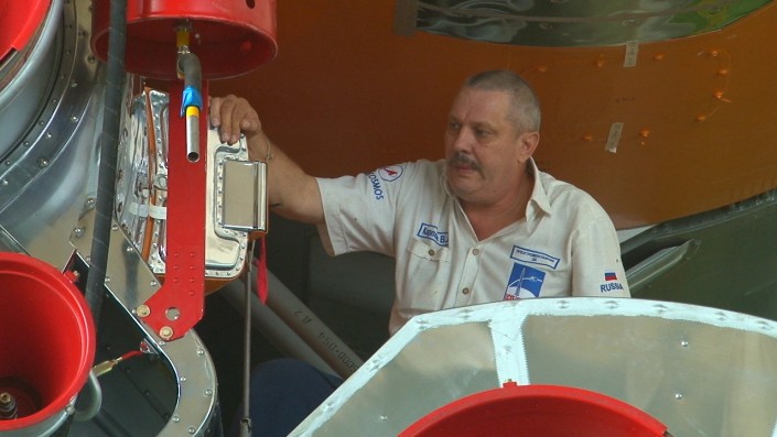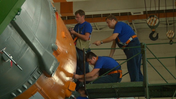 Журналистам удалось попасть в монтажно-испытательный корпус, где проводят последние проверки ракеты. Как сообщил главный специалист Центра организации контроля испытаний двигательных установок РКЦ "Прогресс" Ришат Латыпов, 30 августа специалисты состыковали космическую головную часть с "пакетом", а также закончили работы, связанные с расчетами систем и двигательных установок.