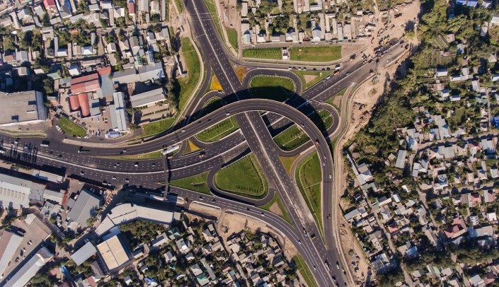 В Алматы открыто движение по новой трехуровневой развязке, построенной строительной компанией "БАЗИС", входящей в группу компаний "БАЗИС-А", из монолитного железобетона в Алатауском районе на пересечении улицы Саина и проспекта Рыскулова. Транспортная развязка представляет собой комплекс сооружений с девятью съездами, включающий эстакаду длиной 311 метров и транспортный путепровод под проспектом Рыскулова по улице Саина, имеющий длину более 36 метров. Проезжая часть по проспекту Рыскулова и по улице Саина имеет по 6 полос движения. Пропускная способность развязки - 250 тысяч автомобилей в сутки.
