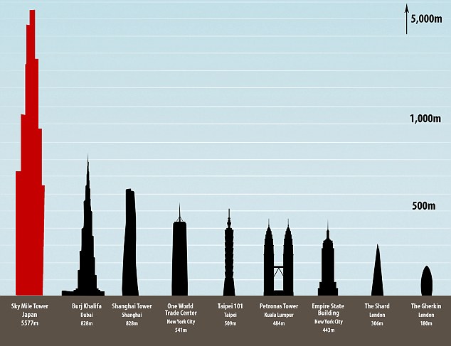 Небоскреб под названием Sky Mile ("Небесная миля") станет центральным зданием футуристического мегаполиса, который планируется расположить на юго-восточном побережье столицы Японии. Комплекс будет окружен группой искусственных островов. В самом небоскребе смогут разместиться более 50 тысяч человек, а мегаполис будет вмещать до полумиллиона.