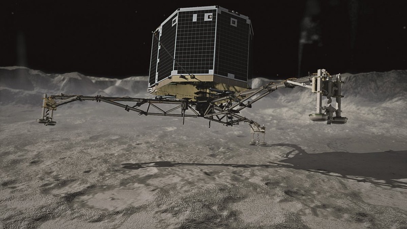 Научный модуль "Фила" космического зонда "Розетта" Европейского космического агентства (ЕКА) совершил посадку на поверхность трехкилометрового ядра кометы Чурюмова-Герасименко. С помощью модуля ученые планируют изучить химический состав ядра кометы. Из-за огромного расстояния между кометой и Землей ученые узнали о том, была ли посадка успешной, только спустя 28 минут.