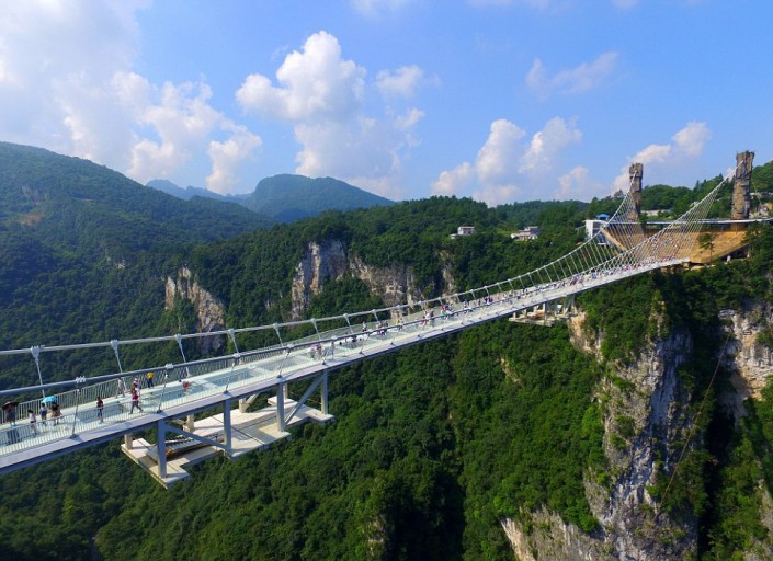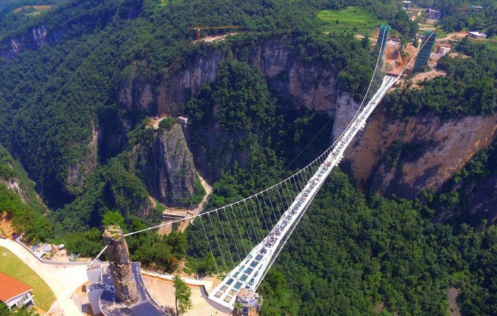 В субботу, 20 августа, в китайской провинции Хунань официально открылся самый длинный и самый высокий в мире стеклянный мост, сообщает China News Service.