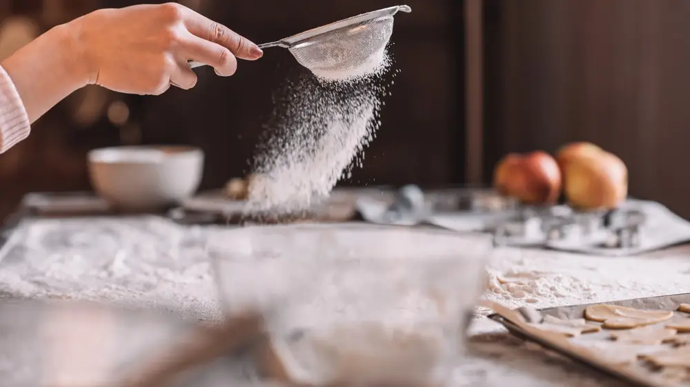 - Добавьте муку, смешанную с разрыхлителем, и замесите мягкое тесто. Дайте ему "отдохнуть" около пяти минут.