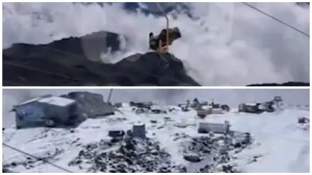 25 альпинистов застряли на Эльбрусе после обрыва канатной дороги Кадры из видео: t.me/mash