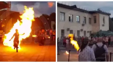К счастью, она быстро среагировала, скинула горящую амуницию и упала на землю, а коллеги смогли быстро огонь потушить. В итоге девушку с ожогами госпитализировали, никто из зрителей не пострадал.