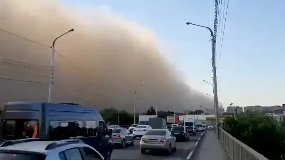 Пыльная буря накрыла несколько районов Астрахани и Дагестан. Буря прошла в Кизлярском и Тарумовском районах, после чего направилась в Махачкалу, в сторону городов Избербаш и Дербент.