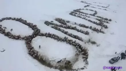 Местные фермеры из Иглинского района выстроили возле села Улу-Теляк надпись "8 марта" при помощи лошадей. Необычную открытку сделали при помощи заготовленных трактором траншей. В них по команде забежали животные. Высота буквы — около ста метров.