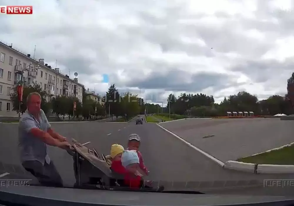 Жуткое ДТП попало на камеру видеорегистратора в городе Лесное в Свердловской области России. Как сообщает телеканал Life News, 20-летний водитель автомобиля Volkswagen Polo сбил мужчину, перебегавшего дорогу с тремя детьми: двое малолетних близнецов сидели в коляске, которую катил отец, еще одного мальчика мужчина вел за руку.