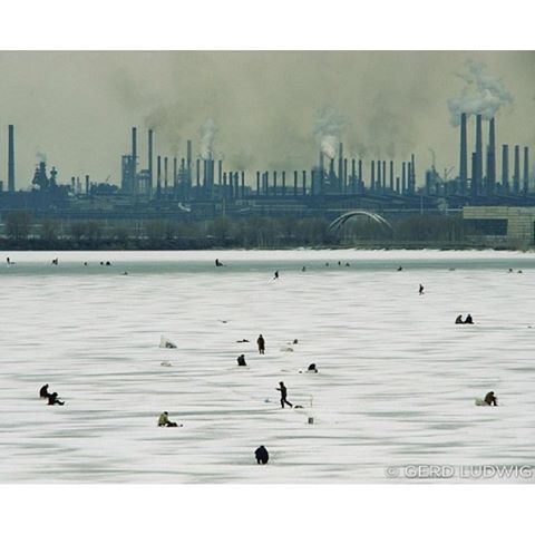 "В зимние выходные мужчины сверлят лунки в толстом льду реки Урал, чтобы попытать удачу. Зная о загрязненной отходами от огромного завода реке, многие рыбаки лучше бы продали улов на рынок, а не оставляли его себе. Чтобы сделать фотографию, я стоял на европейской части, в то время как металлургический завод расположен в Азии", - написал Ди Каприо, сославшись на публикацию в National Geographic.