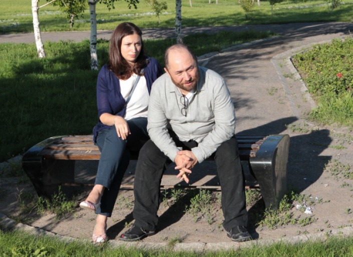 Тимур Бекмамбетов с дочерью Жанной во время прогулки по Астане в 2011 году. Фото РИА Новости
