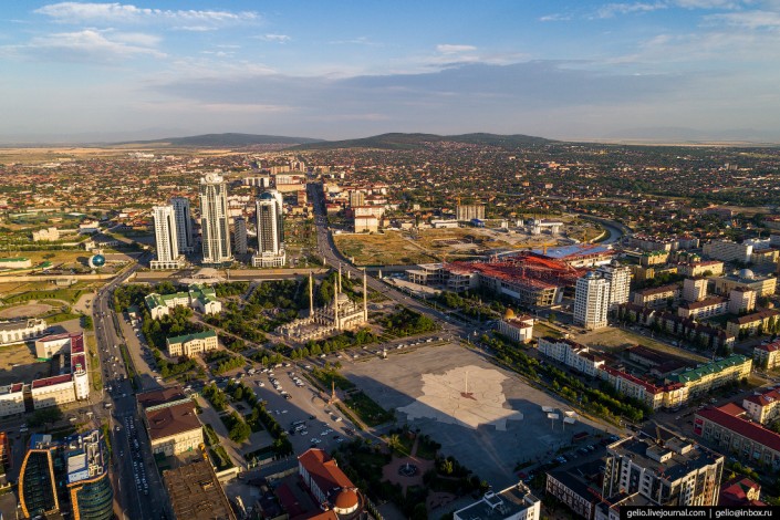 Фотограф из Новосибирска Слава Степанов на кадрах запечатлел основные достопримечательности главного города Чечни - площадь Ахмата Кадырова, мечеть "Сердце Чечни", проспект Владимира Путина, цветочный парк, бизнес-квартал "Грозный-Сити", а также резиденцию главы республики Рамзана Кадырова.