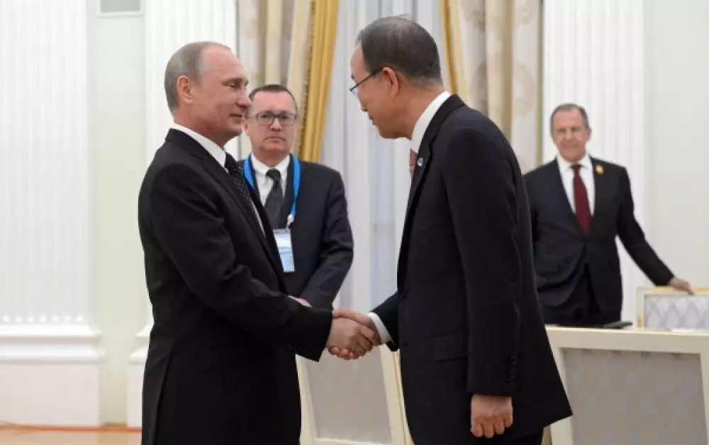 Генеральный секретарь ООН Пан Ги Мун принял многотысячное шествие после парада Победы в Москве за акцию против правительства. Об этом Генсек ООН заявил на встрече с президентом РФ Владимиром Путиным, передает корреспондент Tengrinews.kz со ссылкой на пресс-службу Кремля.