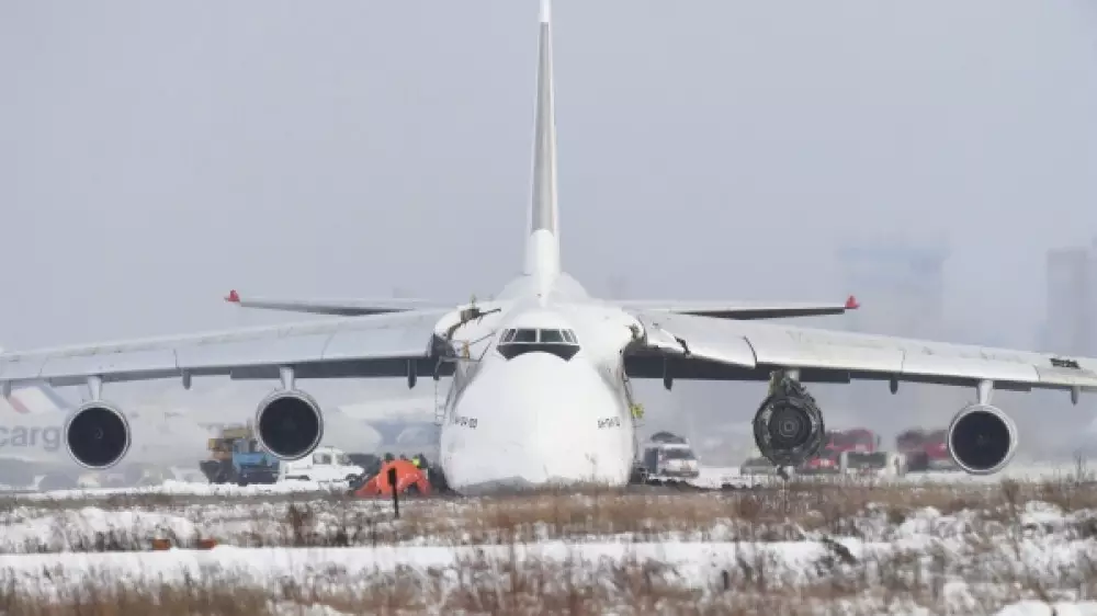 "Самолет авиакомпании "Волга-Днепр" Ан-124 после взлета по маршруту Новосибирск - Вена совершил вынужденную посадку. В связи с имеющими неполадками в двигателе #2 экипаж принял решение о возврате в аэропорт вылета. При приземлении произошло выкатывание воздушного судна за пределы взлетно-посадочной полосы. По предварительной информации, при посадке произошло повреждение пневматиков и левой основной стойки", - сказала представитель Росавиации.