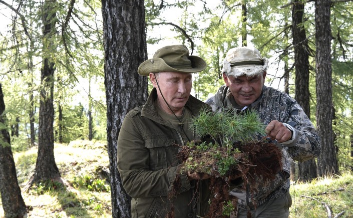Судя по фотографиям, вместе с министром обороны Сергеем Шойгу он собирал грибы. На нескольких фотографиях видно, как президент совершает прогулку на катере.