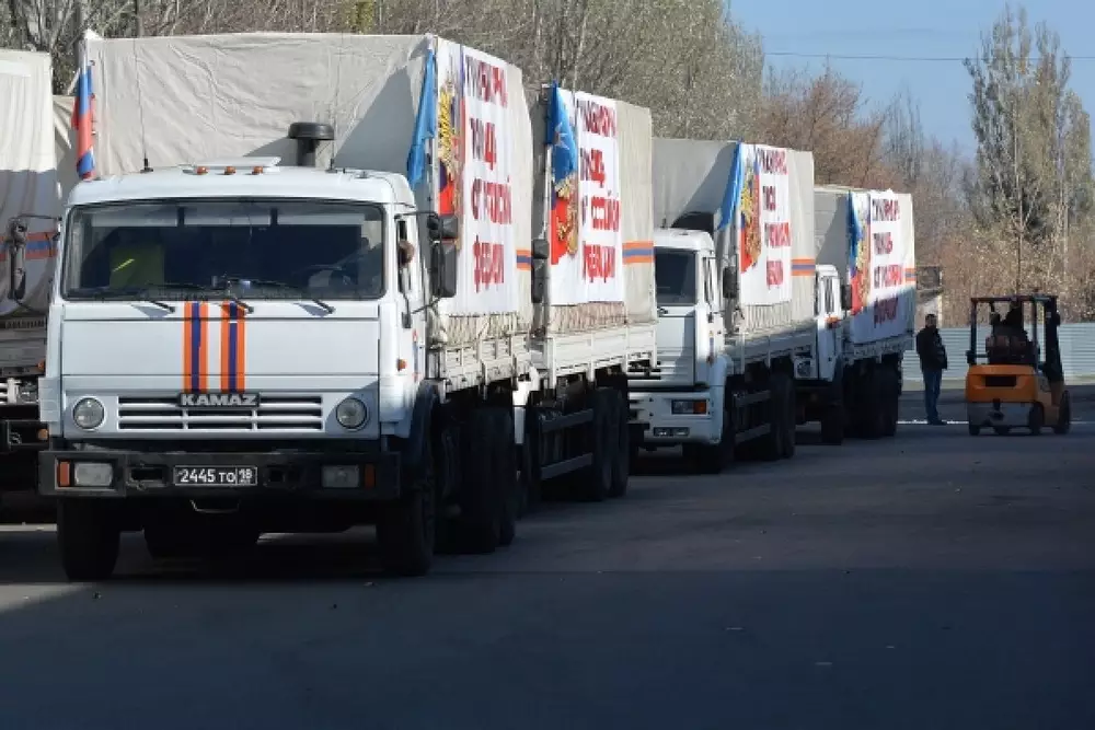 Напомним, 31 октября четвертая автоколонна МЧС России доставила в Донецк и Луганск одну тысячу тонн гуманитарной помощи - продукты питания и стройматериалы. Ранее замглавы МЧС России Владимир Степанов сообщил, что всего в течение недели планируется доставить до трех тысяч тонн гуманитарных грузов.