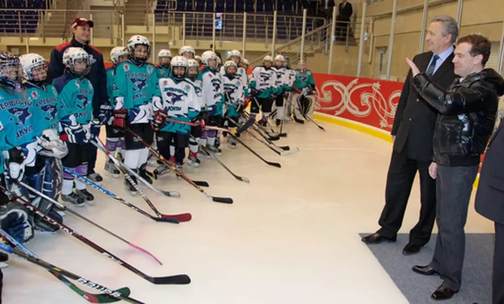 "Честно признаться, всю жизнь хочу встать на коньки, но так у меня пока и не получилось. Помню, в детстве все бегали на коньках, а я - в валенках", - сказал Медведев. "Мы Вас научим!" - пообещала главе РФ Чайковская.