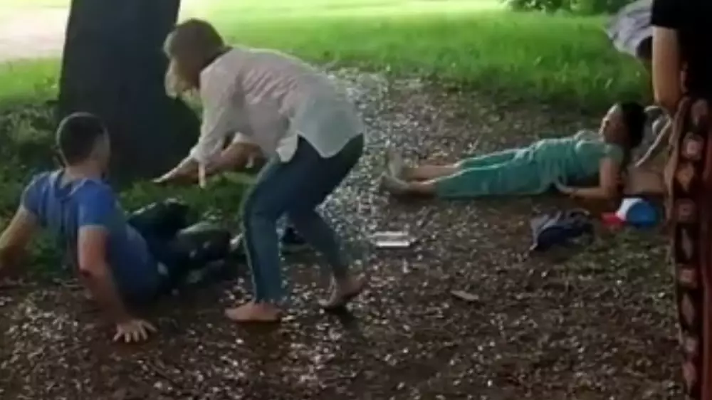 На кадрах, опубликованных каналом, видно, как пострадавшие лежат на земле. Другие посетители парка пытаются оказать им первую помощь.