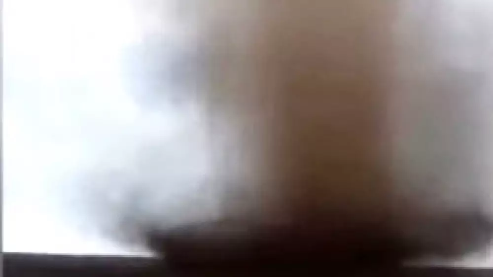 На видеозаписи слышно, как камни бьют по автомобилю, который находится за десятки метров от воронки.
