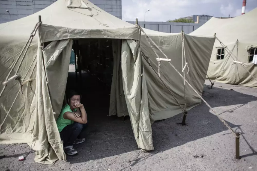 18 нелегальных мигрантов из палаточного лагеря в московском Гольяново, где в этом же районе ранее держали в рабстве казахстанцев, готовы к отправке на родину. Об этом сообщает РИА Новости со ссылкой на заместителя начальника столичного управления ФМС Николая Азарова. Агентство напоминает, что две недели назад во время крупной спецоперации в Москве полицейские задержали около тысячи нелегалов из Вьетнама, Египта, Марокко, Сирии, Кыргызстана, Азербайджана и Узбекистана. Для всех задержанных был организован палаточный лагерь, где они будут дожидаться решения. Первая группа мигрантов, состоящая из 31 вьетнамца, была выдворена 10 августа. В лагере до сих пор остаются 500 иностранцев. "Федеральная миграционная служба (ФМС) России вчера (13 августа) совместно с посольством Вьетнама подготовила документы для еще 18 мигрантов из палаточного лагеря в Гольяново. Бумаги переданы в службу судебных приставов, которая займется отправкой иностранцев на родину", - сказал собеседник агентства. Кроме того, он уточнил, что из специального центра временного содержания в Москве было отправлено на выдворение 37 задержанных иностранцев, в среду планируют выдворить еще порядка 40. "На эти места будут переведены мигранты из палаточного лагеря в Гольяново", - сказал Азаров. Напомним, в одном из магазинов в этом же районе в течение нескольких лет в рабстве держали уроженцев из разных стран СНГ, в том числе из Казахстана. Общественники сообщали, что люди подвергались избиению и у них забрали малолетних детей. Позже магазин был закрыт.