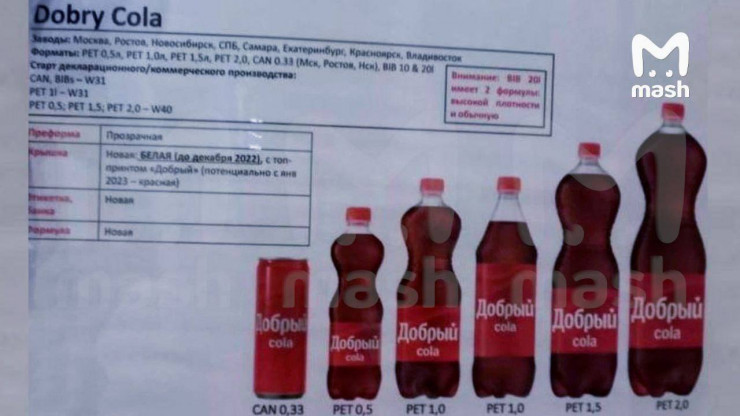 Российский производитель напитков "Мултон" ("дочка" Coca-Cola) принял решение о смене названий напитков Coca-Cola, Fanta и Schweppes на рынке страны. Называться они будут "Добрый Cola", "Добрый Orange" и "Rich тоник" соответственно, передает Tengrinews.kz со ссылкой на Telegram-канал Mash.