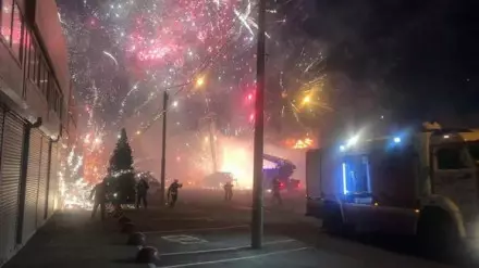 На видео с места происшествия видно, что от огня начали взрываться петарды и фейерверки.