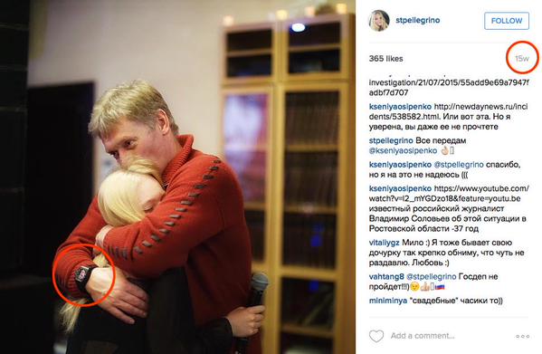 Ранее российский оппозиционер Алексей Навальный написал в своем блоге, что на фотографиях с прошедшей 1 августа свадьбы Пескова на руке пресс-секретаря президента видны часы стоимостью в 620 тысяч долларов. Он отметил, что по официальным декларациям о доходах, за последние три года Песков суммарно заработал 34,5 миллиона рублей. Навальный также напомнил, что пресс-секретарь президента РФ никогда не занимался бизнесом и работает на госслужбе с 1989 года.