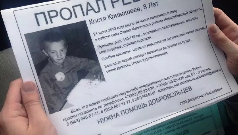 Пропавшего под Новосибирском первоклассника Костю Кривошеева ищут в Казахстане, сообщает РИА Новости. Волонтеры собираются разместить в городах и селах, находящихся близ Новосибирска, ориентировки на пропавшего мальчика. Первоклассник Костя Кривошеев пропал днем 21 июня. Мальчик вместе с отчимом и дедом поехал в лес за дровами. Пока мужчины рубили дерево, он потерялся. Следователи возбудили уголовное дело по статье "Убийство малолетнего". В течение почти двух недель шла совместная поисково-спасательная операция МЧС, МВД и волонтеров, никаких результатов она не дала. "Сейчас ведется работа по Казахстану. Пытаемся договориться с местными властями, чтобы размещать там ориентировки, сейчас идет перевод ориентировки на казахский язык, ведем переговоры с телевидением и властями Казахстана. Мало ли, отвезли его (Костю) в Казахстан, есть такая версия", - рассказала волонтер общественной организации "Лиза Алерт" Анна Будовая. Она отметила, что в Новосибирске волонтеры уже расклеили более двух тысяч ориентировок на пропавшего мальчика и постоянно их обновляют, так как коммунальные службы их срывают.