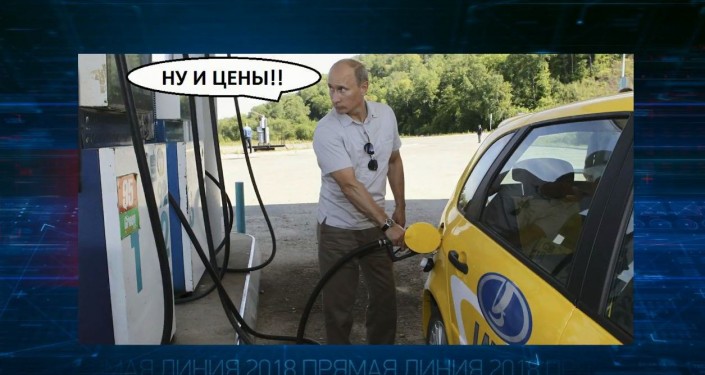 Кроме того, в ходе прямой линии президенту России показали "мем" из Интернета о высоких ценах на бензин в России.