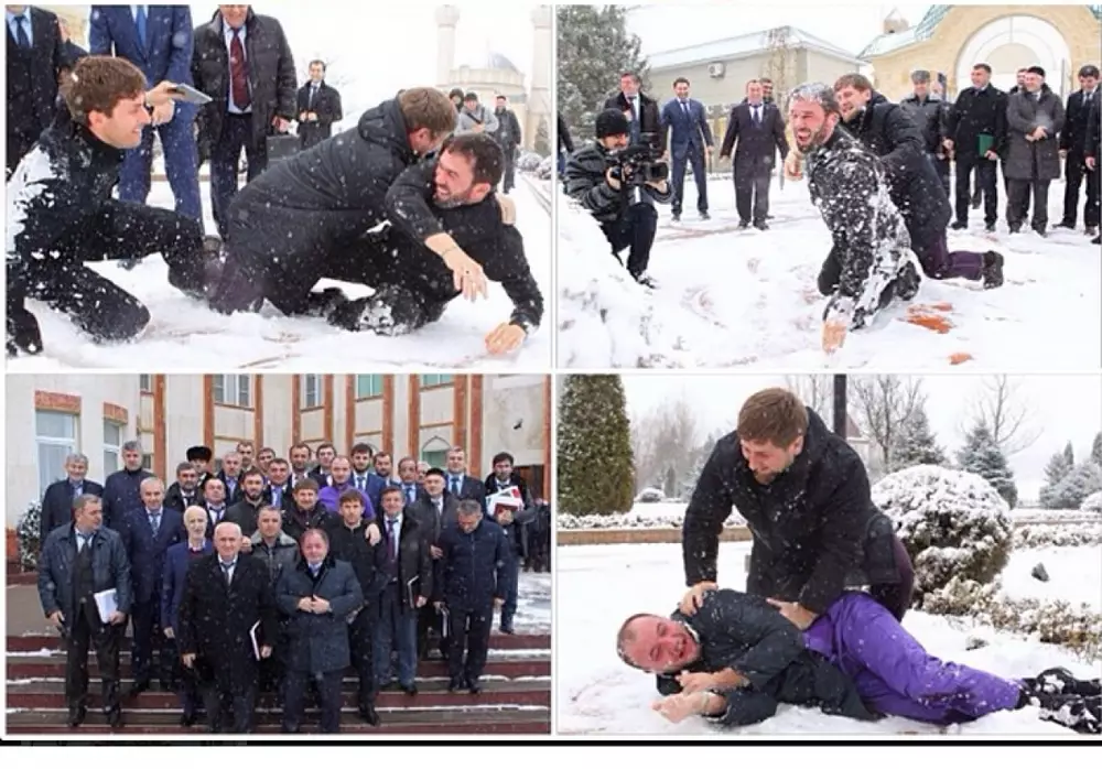 Президент Чечни Рамзан Кадыров устроил снежные игры с министрами страны, сообщает НТВ. Таким образом Кадыров решил помочь министрам справиться с рабочим стрессом.