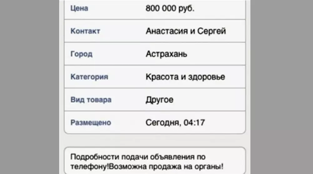 Сообщается, что оперативники выявили преступление 25-летнего молодого человека 12 июня в ходе ежесуточного мониторинга популярных интернет-сайтов. Подозреваемый вывесил объявление о продаже ребенка в возрасте одного года и восьми месяцев. За своего сына он просил 800 тысяч рублей (около 4 миллионов тенге). В конце текста мужчина сделал приписку: "Возможна продажа на органы!".