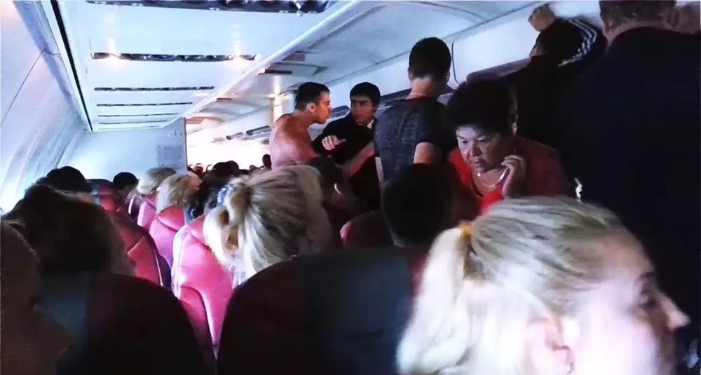 На кадрах видно, как один из пассажиров пытается развязать драку с другим пассажиром. Молодые люди, возможно, находящиеся в изрядном подпитии, начинают оскорблять друг друга. Затем словесный конфликт перерастает практически в рукопашную битву.