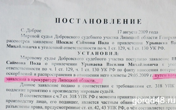 Позже липецкий портал GOROD48 раздобыл распоряжение, вызвавшее такую реакцию Путина. "Сегодня в редакцию пришел фигурант этого скандального дела Василий Урываев и принес копию обращения к Путину его жены Тамары (к которой было подколото то самое постановление судьи Геворкян). На 14-ти страницах Тамара Урываева рассказывает главе государства о том, что, по ее мнению, было подоплекой уголовного дела ее сына Романа, осужденного за развратные действия без применения насилия лицом, достигшим восемнадцатилетнего возраста, в отношении лица, не достигшего шестнадцатилетнего возраста и половой зрелости. По мнению матери осужденного, история уголовного преследования Романа началась после того, как ее муж Василий Урываев был оправдан по уголовному делу по клевете и оскорблениям, фигурантом которого был гражданин Великобритании Саймон Шекилс, его сосед по земельному участку в селе Капитанщино", - сообщает издание.