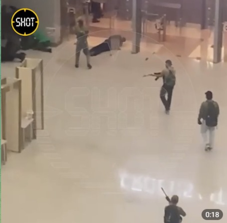 Российские Telegram-каналы распространяют кадры, на которых видно, как люди с оружием расстреливают посетителей. Очевидцы сообщают СМИ, что нападавшими были "мужчины с черными бородами, с автоматами и боеприпасами".