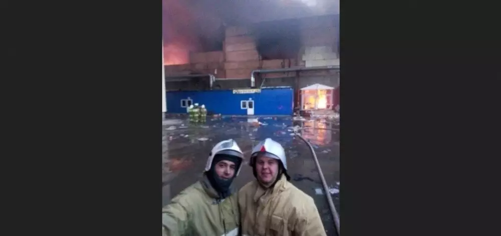 В соцсети была выложена фотография двух молодых людей в форме пожарных, которые сфотографировали себя на фоне тушения пожара в ТЦ. Подпись под снимком гласила: "Вот, чем занимались пожарные во время пожара. Мне страшно после этого". Фото вызвало множество негативных комментариев.