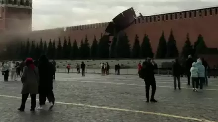 Ураганный ветер сломал зубцы на стене Кремля в Москве Кадр из видео с сайта mk.ru